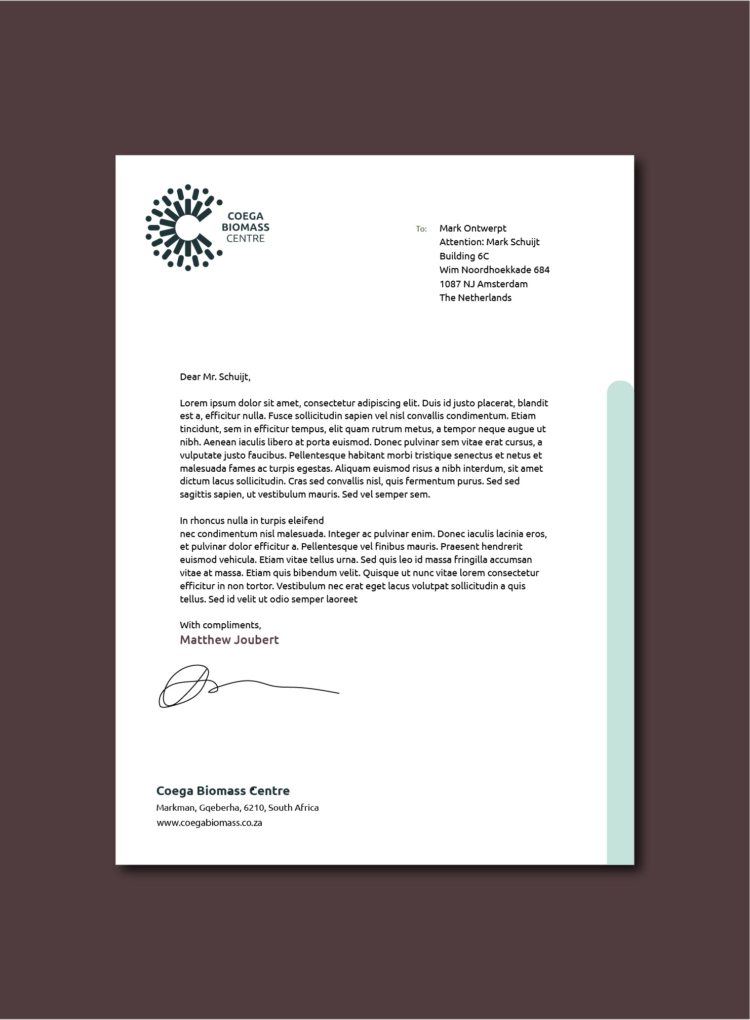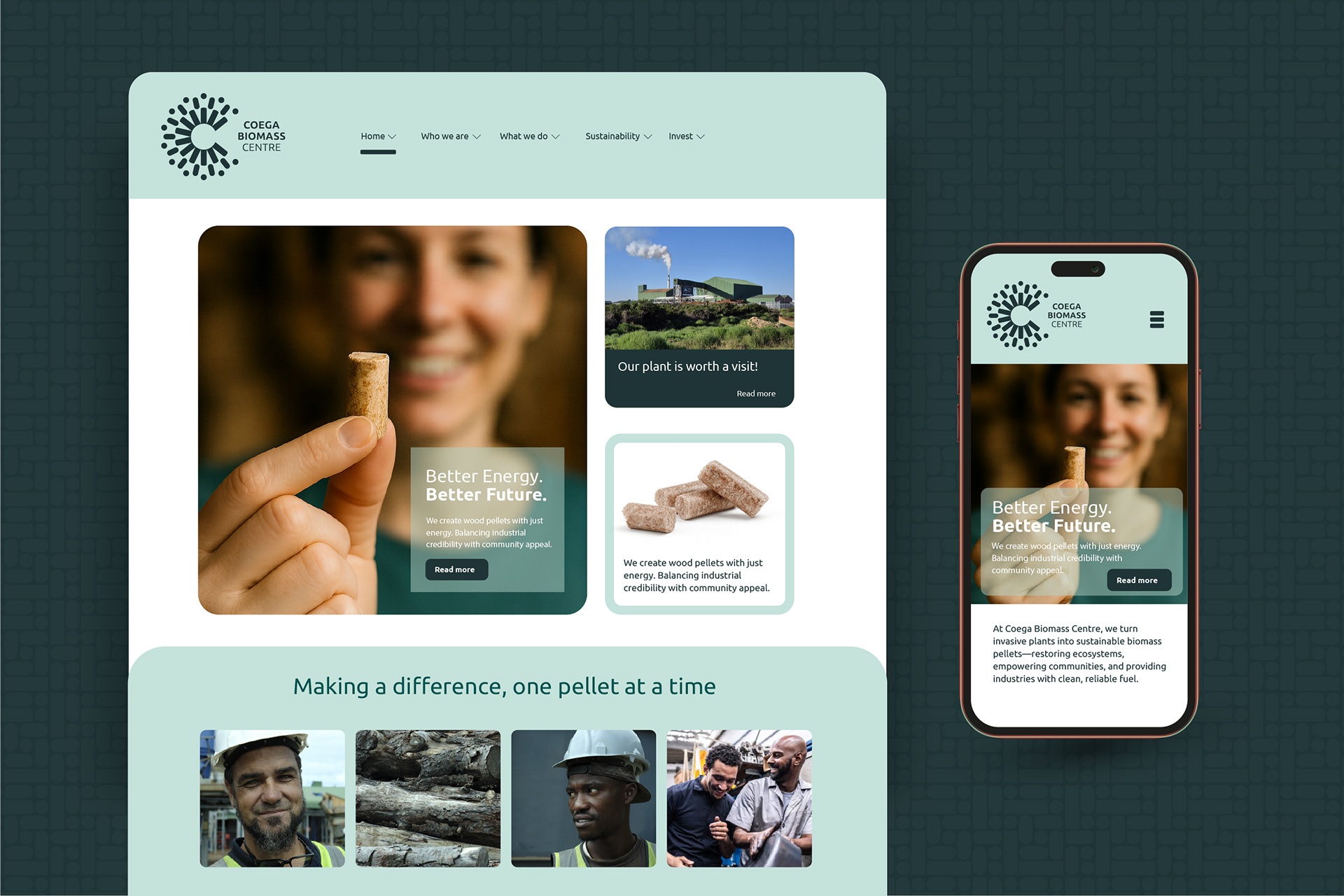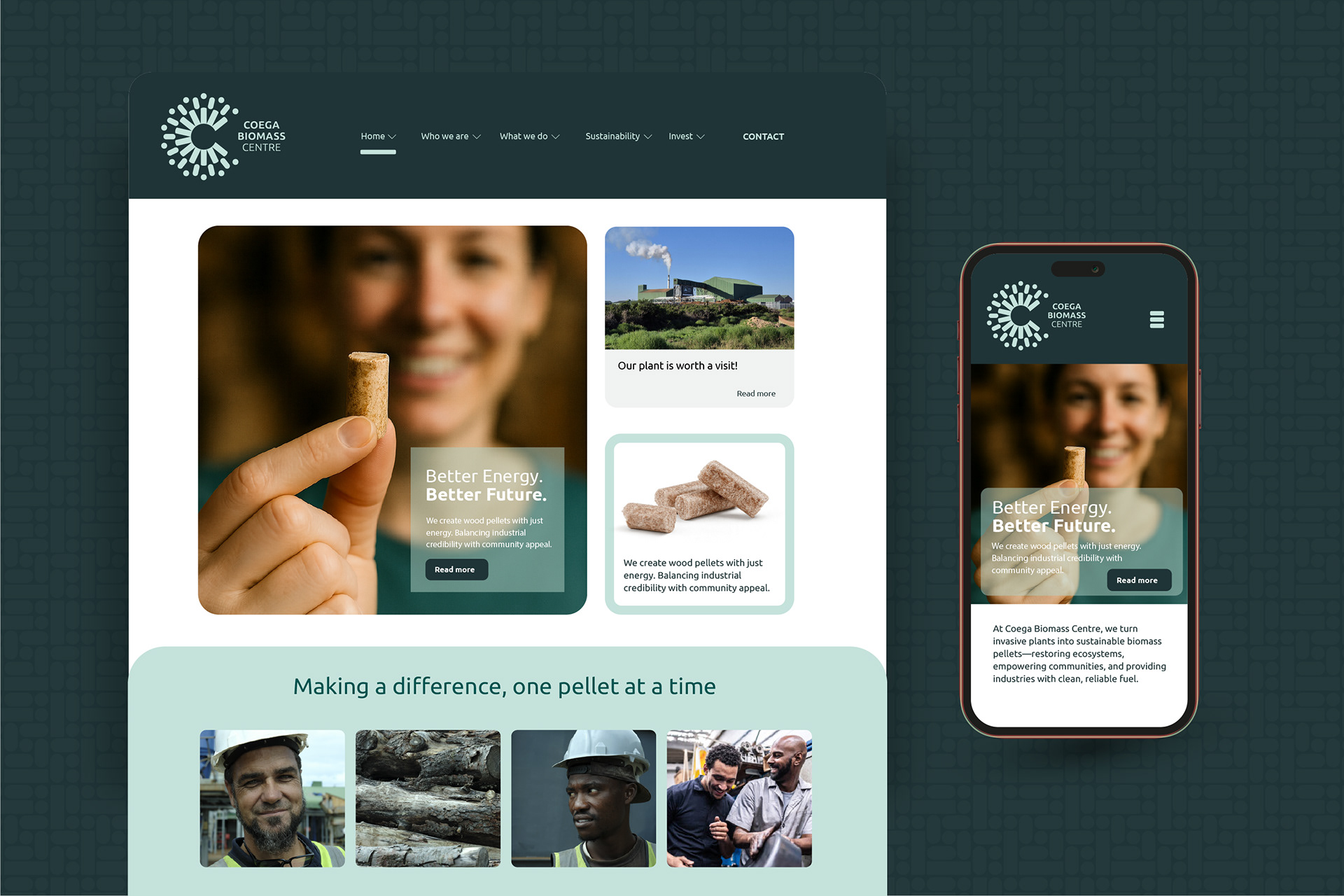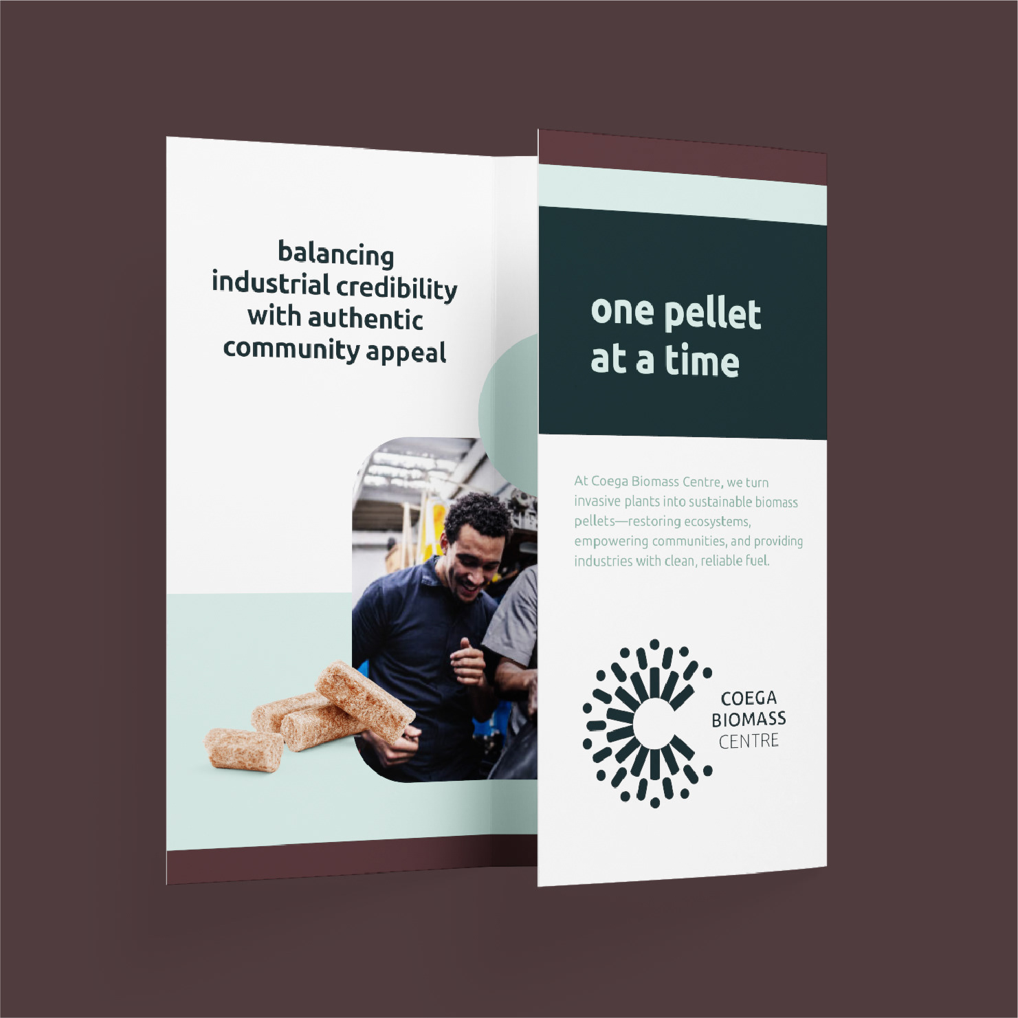 A brand built on balance — between industrial precision and human connection. Coega Biomass Centre transforms invasive plants into clean energy, restoring both ecosystems and opportunity.