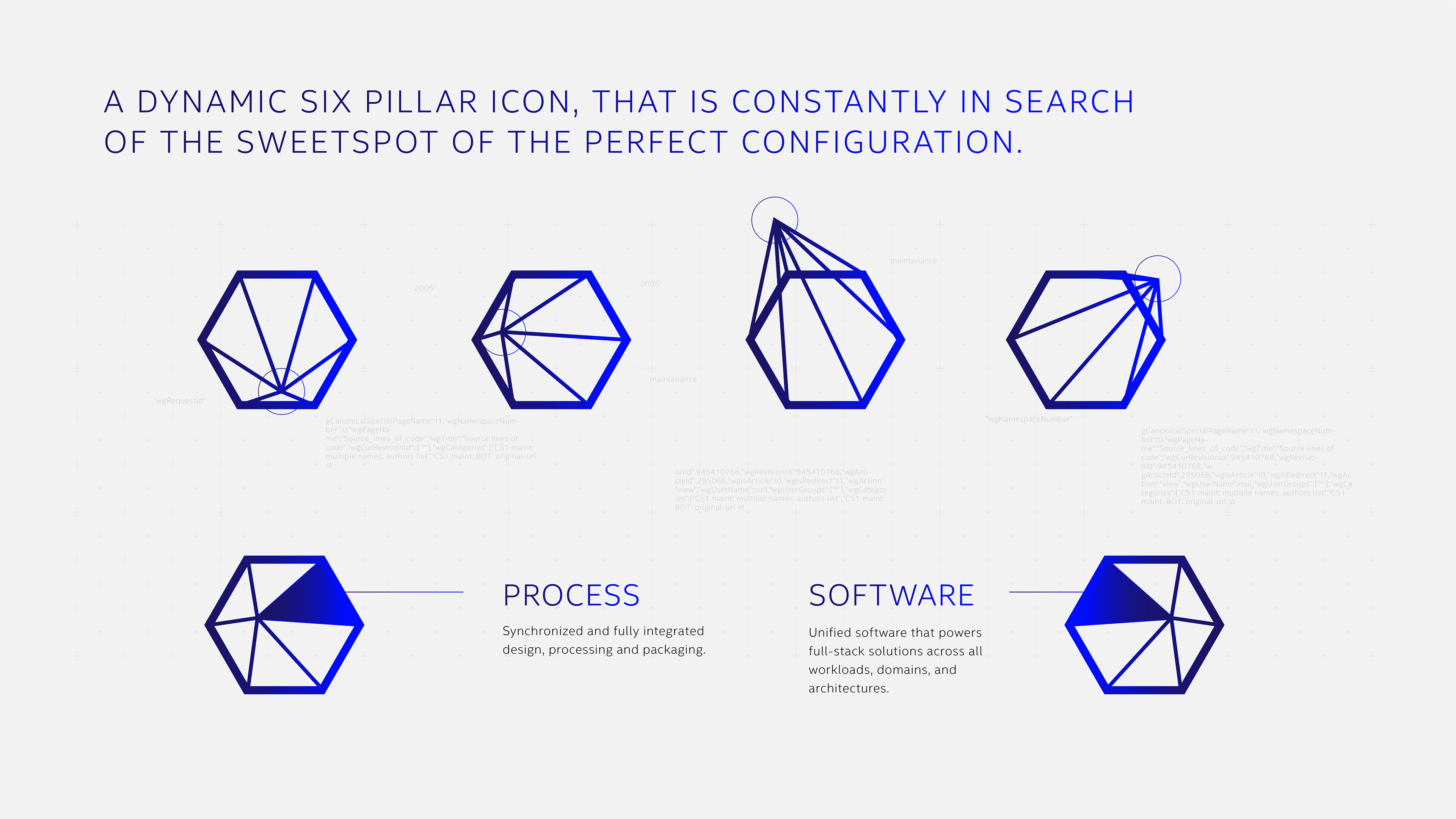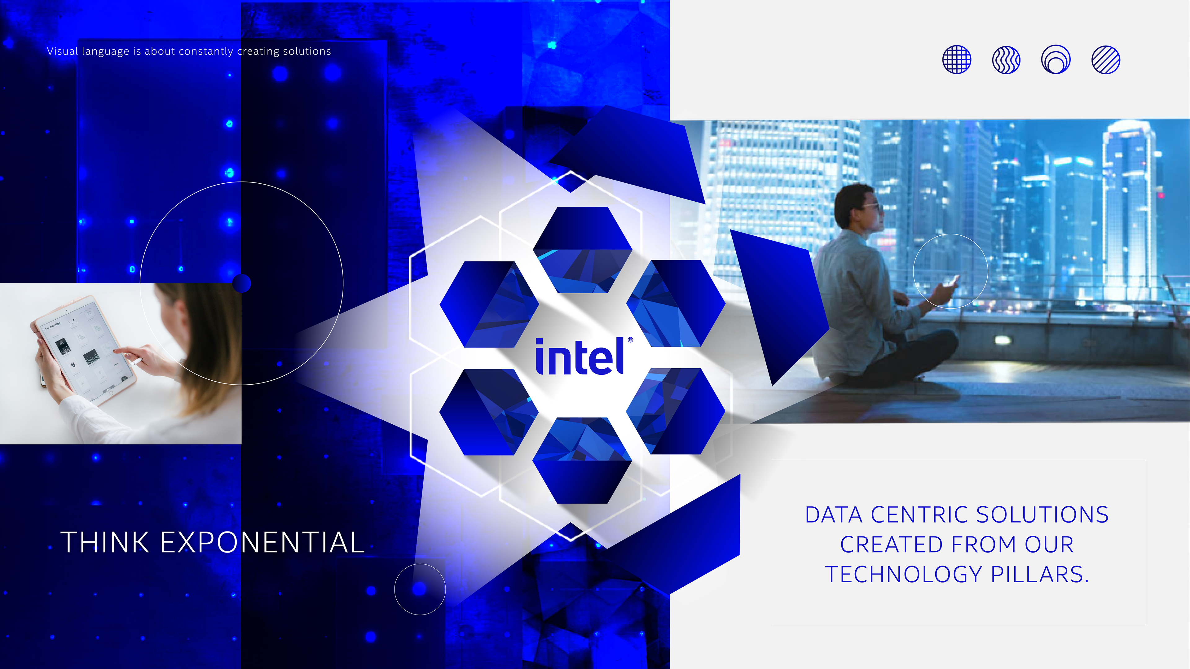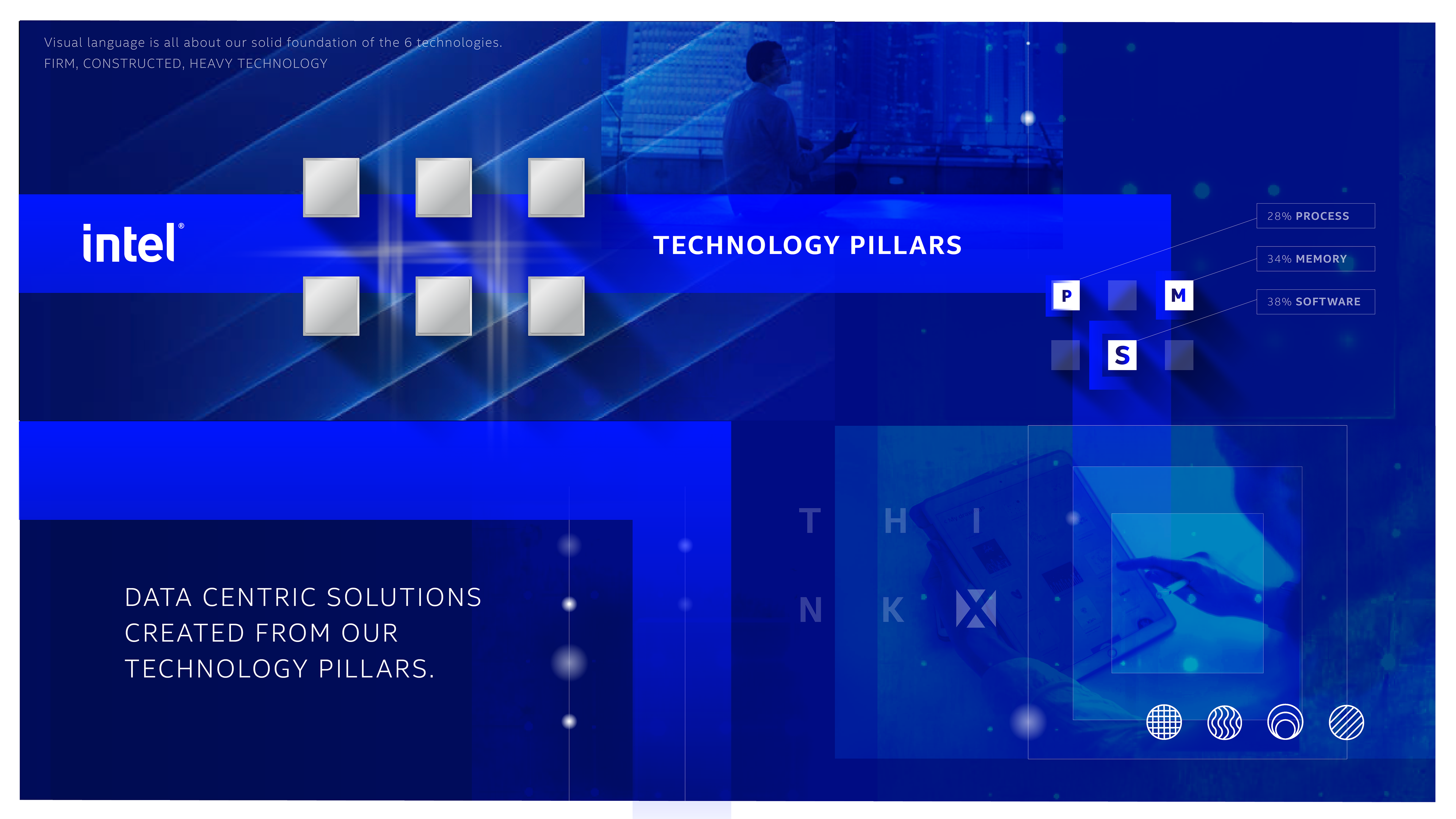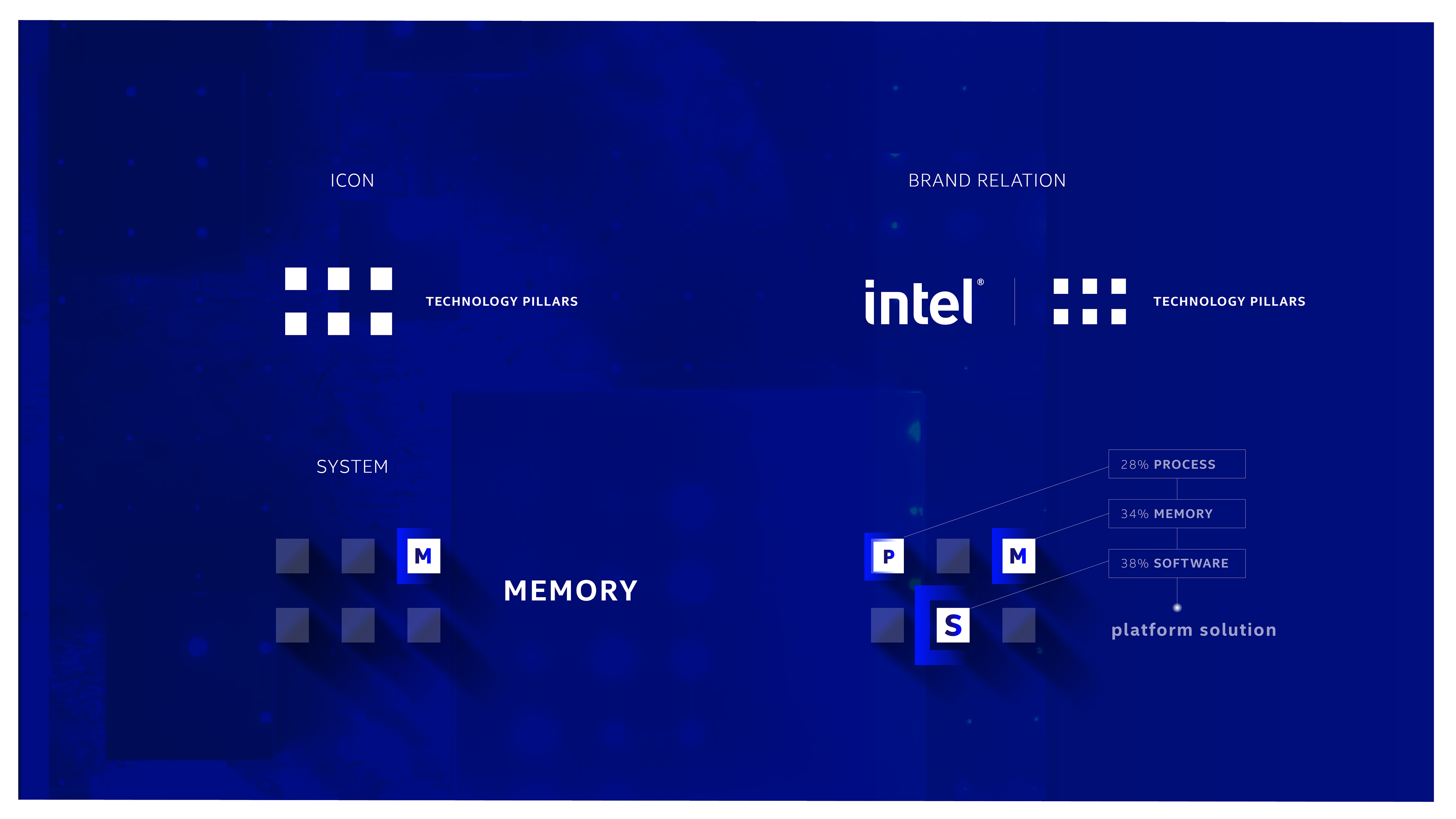 Concepts for a logo system of Intel's Technology Pillars.
