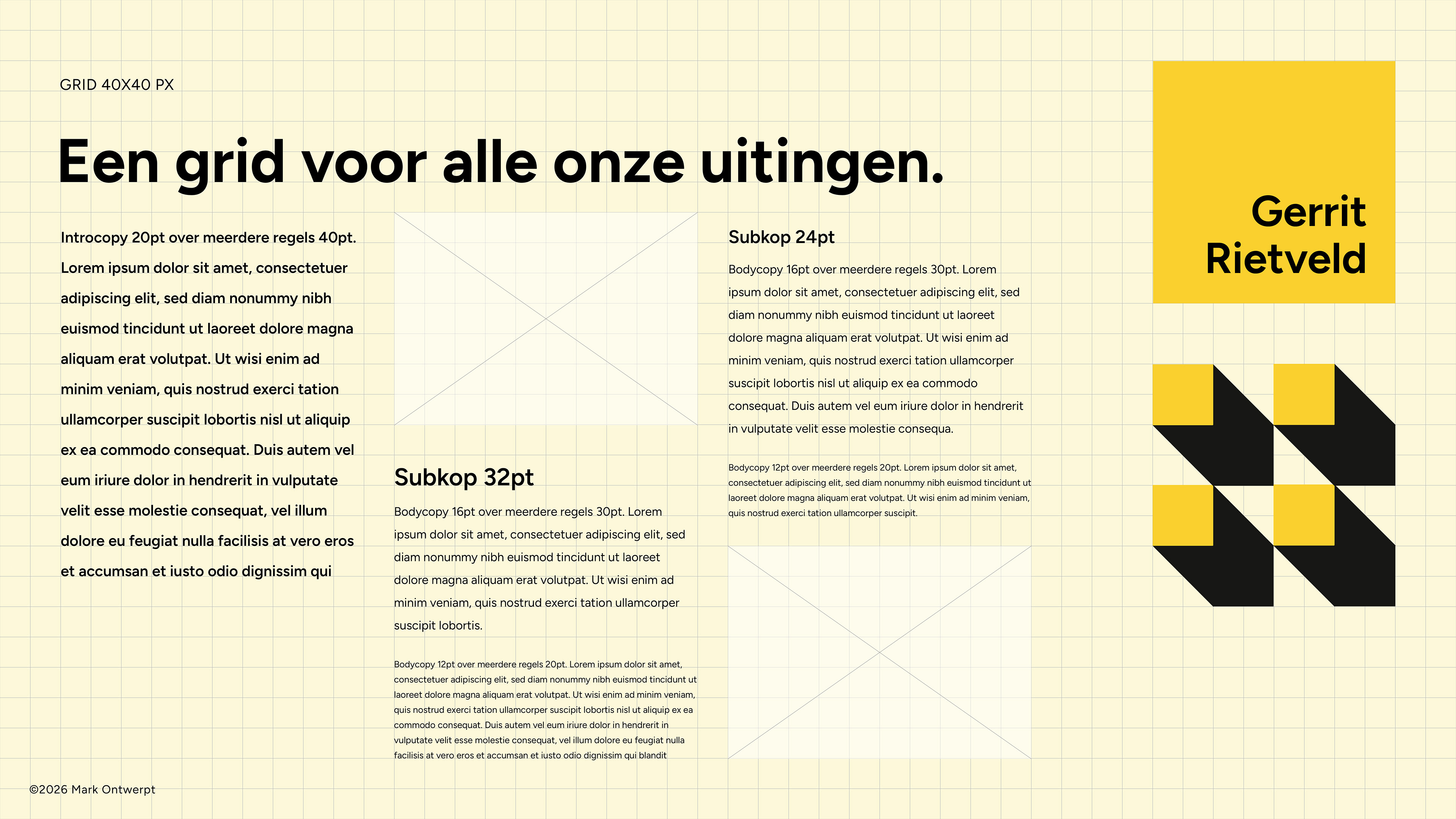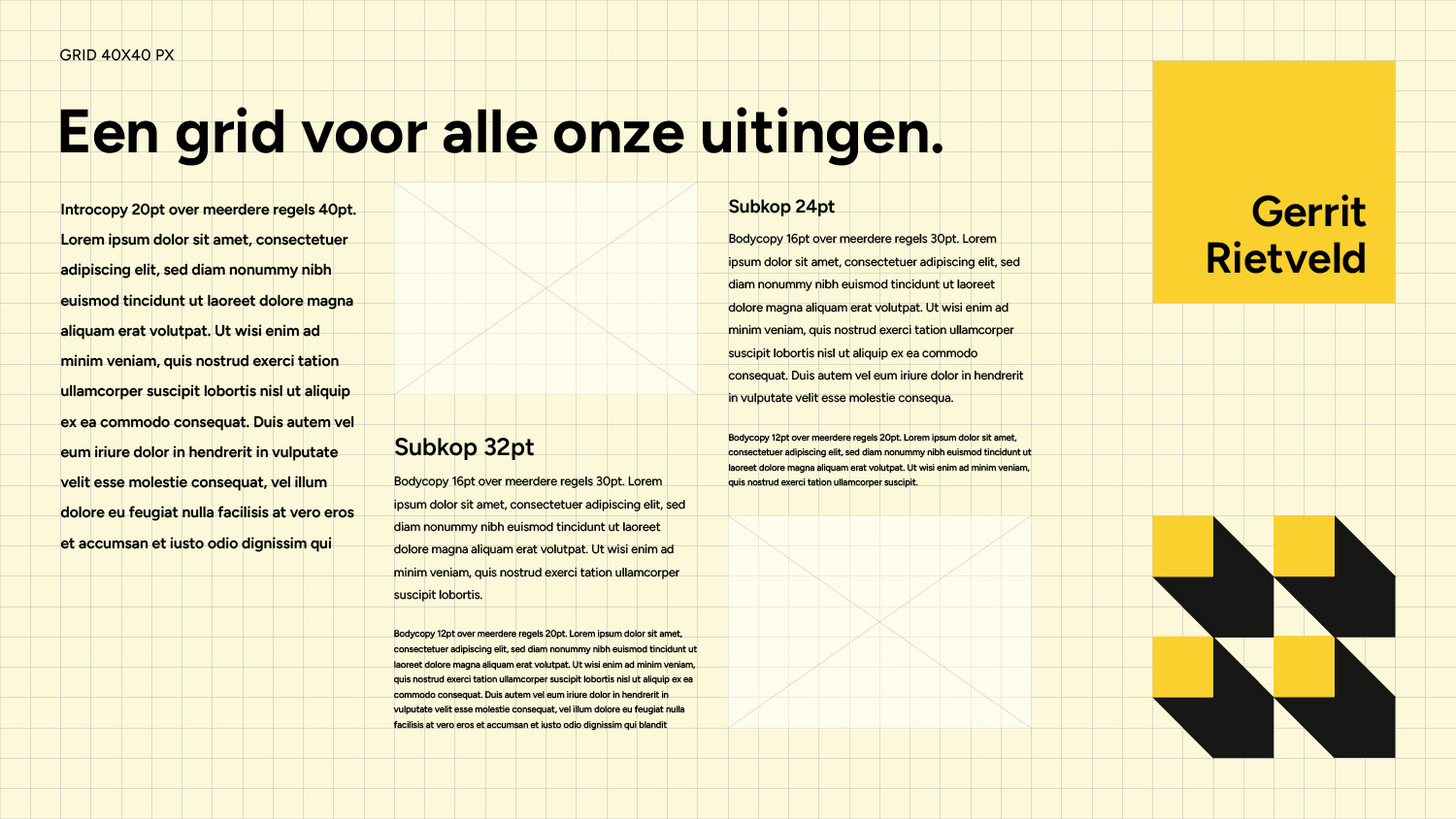 Gerrit Rietveld beschouwde de verbinding als het punt waar krachten samenkomen. Het is het moment waarop de constructie zichtbaar en eerlijk wordt: het bewijs dat iets is gemaakt, niet verstopt. Door juist de kopse kanten te accentueren met een gele kleur, wees hij de plek aan waar het werkelijk gebeurt.